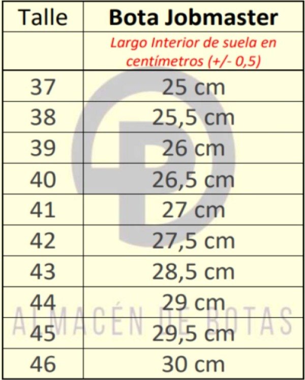 LA GUÍA DE TALLES DE CALCE INTERNO TIENE UNA TOLERANCIA DE +/- 0.5 CM